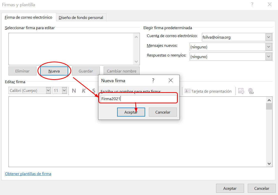 4. Agregar una NUEVA FIRMA y asignarle un nombre.