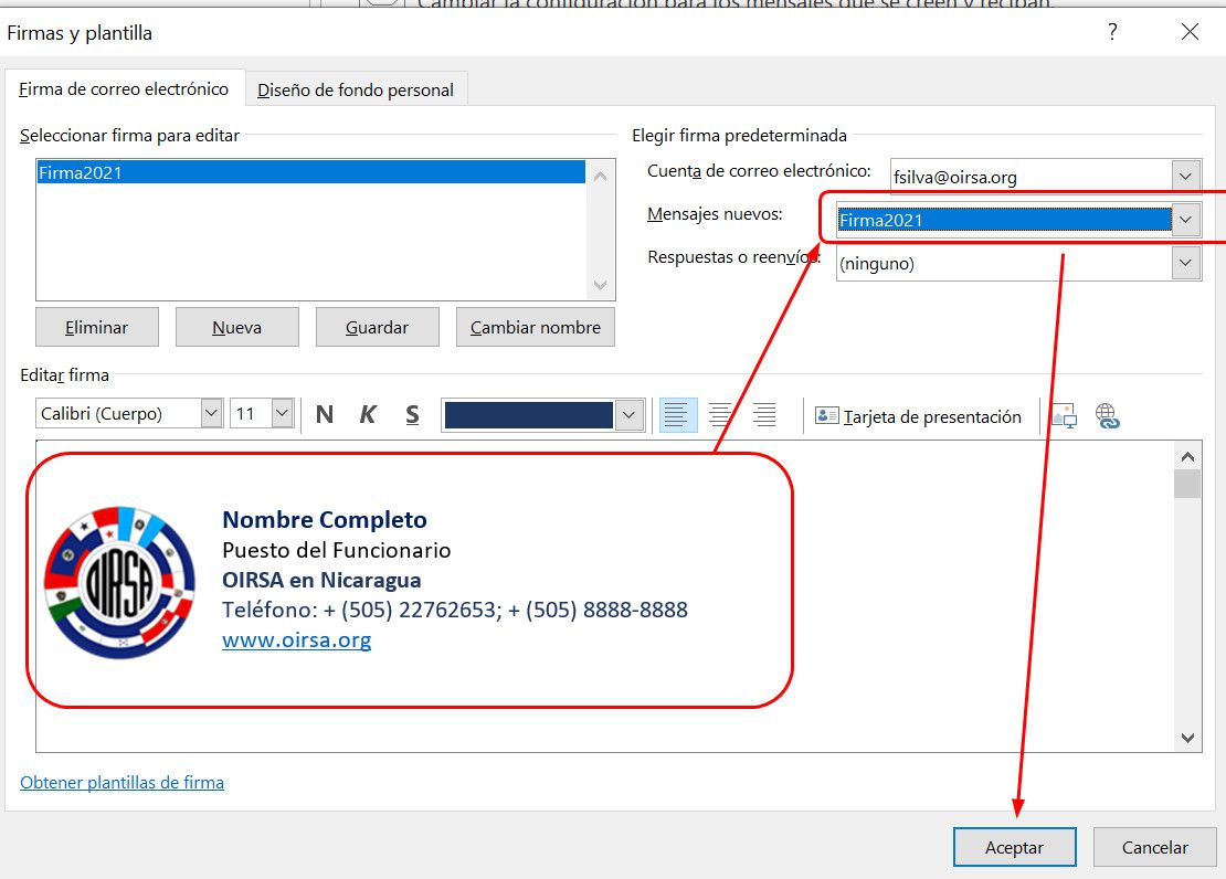 6. Pegar el formato del punto anterior y pegarlo en el campo de la firma.
